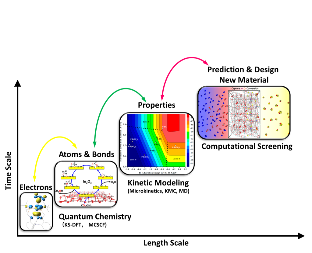 structures, properties, mechanisms, thermodynamics and kinetics of reactions for a wide range of materials including metals, metal oxides, metal complexes, zeolites, metal–organic frameworks and covalent-organic frameworks at the molecular level.